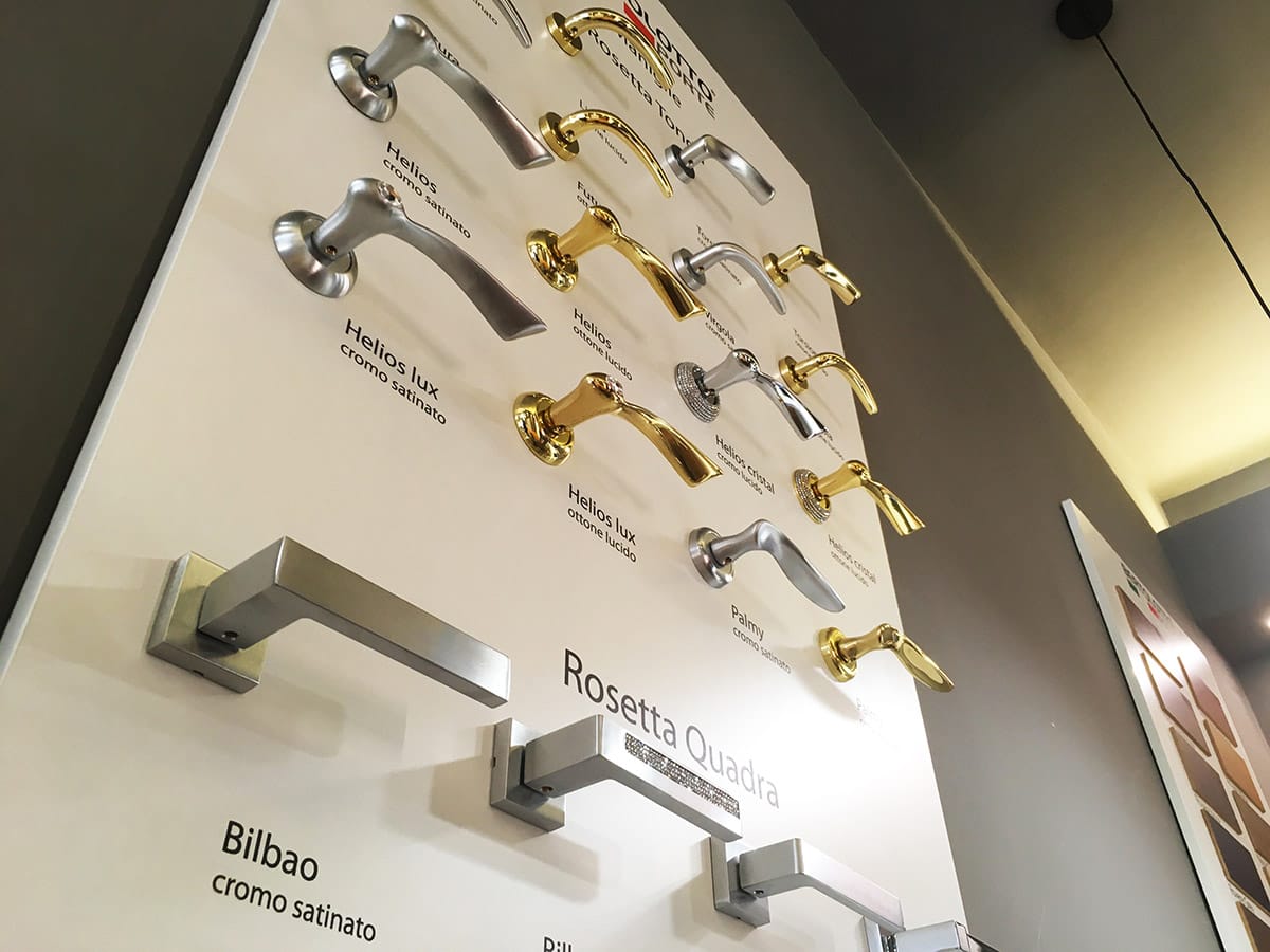A section of our showroom is dedicated to doors, where specialized technicians will assist you in your choices by showcasing the features, components, colors, and available materials, as well as the handles and finishes from our entire range.