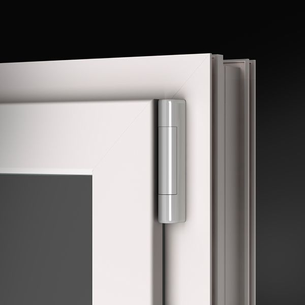 Cerniere: Tipo anta-ribalta a forare, che non interrompono la continuità della guarnizione di battuta dell’anta. Portata massima delle cerniere 100 kg.